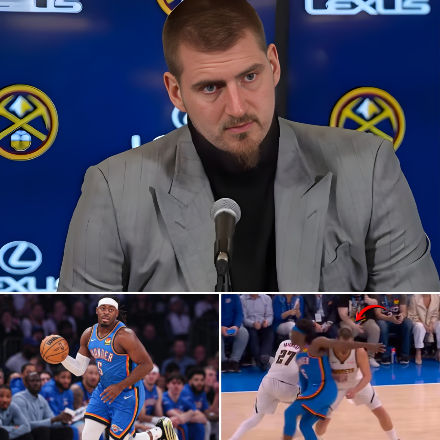During the heated contest between the Denver Nuggets and the Oklahoma City Thunder, several sequences reportedly involved heavy defensive pressure on Nikola Jokić. Observers noted that the Serbian center faced consistent double teams aggressive positioning and physical attempts to deny him space near the basket. One particular moment late in the game appeared to trigger frustration when contact occurred while Nikola Jokić attempted to establish position in the paint. Although referees allowed play to continue the sequence became a focal point in postgame discussions. After the final buzzer reporters gathered around the Nuggets star expecting the usual calm analysis of the game. Instead the response from Nikola Jokić surprised many people because of the emotional tone that accompanied his words.