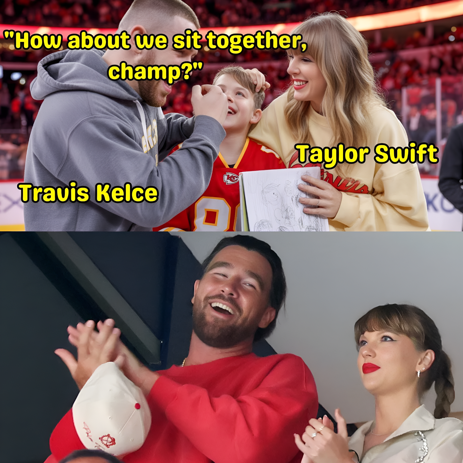 The video recounts that Swift and Kelce were attending a Kansas City Mavericks hockey game at the T-Mobile Center, attempting to keep a low profile. During the first period, Kelce reportedly noticed a young boy sitting several rows ahead of them—alone, wearing an oversized team jersey and clutching a small notebook.