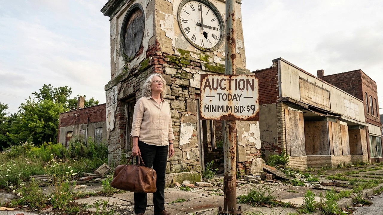 Below the tower, a crooked sign swayed in the breeze: Auction Today. Minimum Bid: $9.