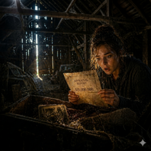 The shack was worse than she had imagined. The wood was warped and discolored, cracked in places, the porch sagging beneath the weight of years. But there was something about the house itself, its dark presence against the sky, that felt ancient. Her hands shook as she reached for the rusted brass doorknob. The door opened with a creak, and as it swung inward, a thick wave of musty, stagnant air poured out. The smell of decay and abandonment was overwhelming, but there was something else beneath it—something deeper, more unsettling, as if the house had been holding its breath for decades.