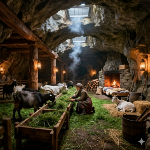 Inside her cistern home, Clara huddled with Petunia close beside her. Fear gnawed at her edges, but determination burned brighter. “We can do this, girl,” she whispered to the goat, stroking her coarse white fur. She had prepared as best she could, stuffing every crack with extra straw and blankets. The thick stone walls, sunk partially into the earth, held the cold at bay far better than any flimsy wooden shack. The structure’s natural insulation kept the interior surprisingly stable, drawing on the steady temperature of the ground itself.