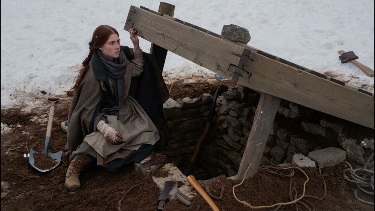 The air inside was still. Heavier. Less reactive. The kind of air that doesn’t change quickly. The ground held the temperature steady. The wagon above broke the worst of the storm. I lit a small fire—one careful log—and watched the heat build slowly, then settle. It didn’t rise and vanish into the night. It stayed. I sat back against the packed earth wall, listened to the faint howl above, and felt something settle in my chest for the first time since my husband died.
