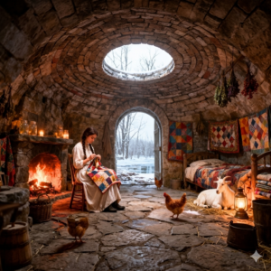 But inside the small insulated room within the silo, Martha, Agnes, and Thomas were safe. The captured geothermal heat, held by the thick clay walls, kept the temperature steady and life-sustaining. Outside, the wind shrieked and battered the metal shell, which groaned and shuddered. Inside their haven, it was quiet and warm. Agnes slept peacefully in the small bed Martha had built. Martha and Thomas sat at their tiny table, the lantern light casting soft shadows on the curved wall. They did not need many words. The shared stillness spoke volumes. Everything they had built together was holding back death itself.