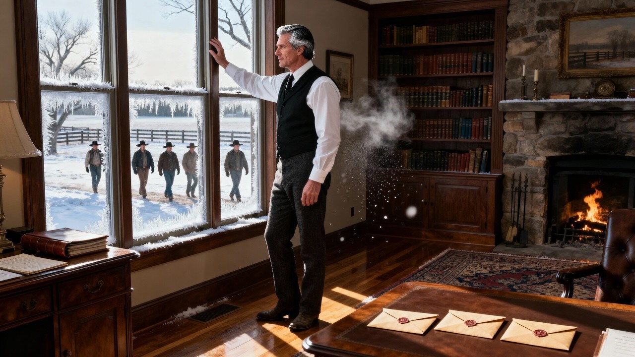 James Hayes stood at the tall window of his study, watching his foreman hand out the year-end bonuses to the ranch hands below. Each man touched his hat in quiet respect, slipped the thick envelope into his coat, and walked away across the frozen yard. Not one of them smiled. The morning sun cast long blue shadows over the frost-covered ground, turning every surface into delicate white lace.