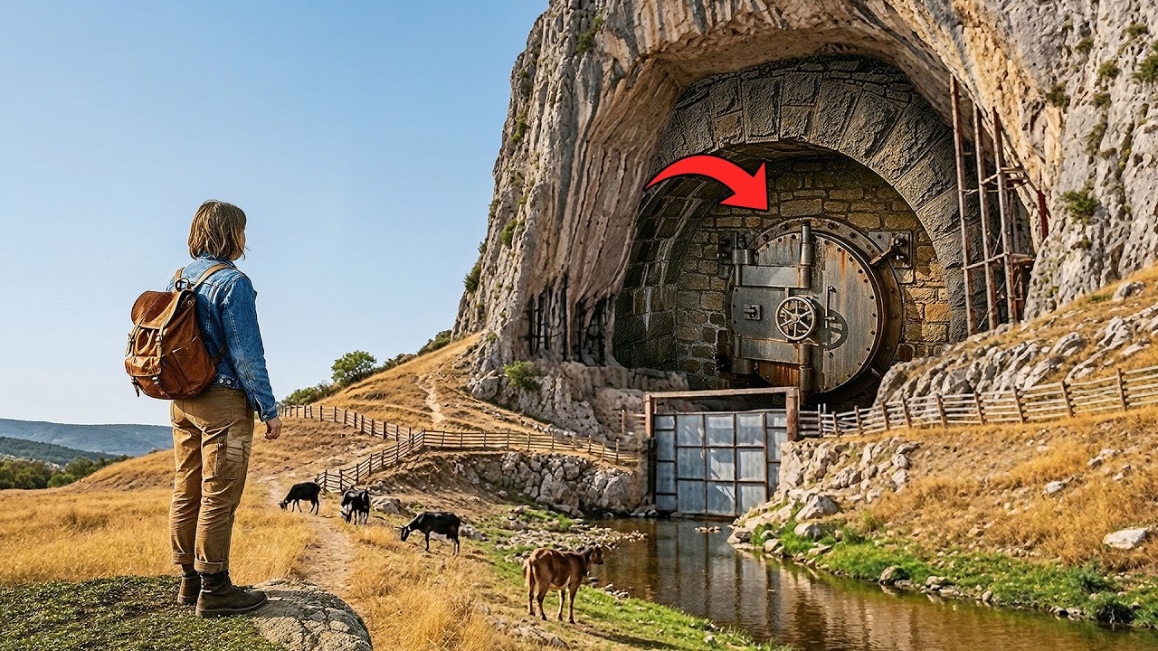 After an hour of climbing, the trees opened to reveal a sheer limestone cliff. I pushed through blackberry bushes and found two massive steel doors built seamlessly into the rock face.