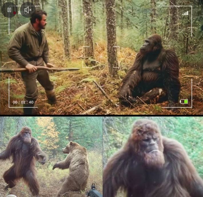 Both creatures stopped fighting immediately. A man, a grizzly bear, and a Bigfoot, all staring at each other in the clearing.