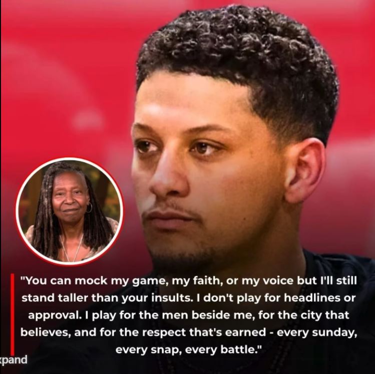 The broadcast was meant to be lighthearted — a routine celebrity roundtable, a mix of pop culture chatter and sports talk. But what happened next will likely be replayed, dissected, and debated for days. In a moment no one saw coming, Patrick Mahomes, the Kansas City Chiefs superstar quarterback, delivered a poised yet earth-shaking response to a remark from entertainment icon Whoopi Goldberg that instantly froze the studio.