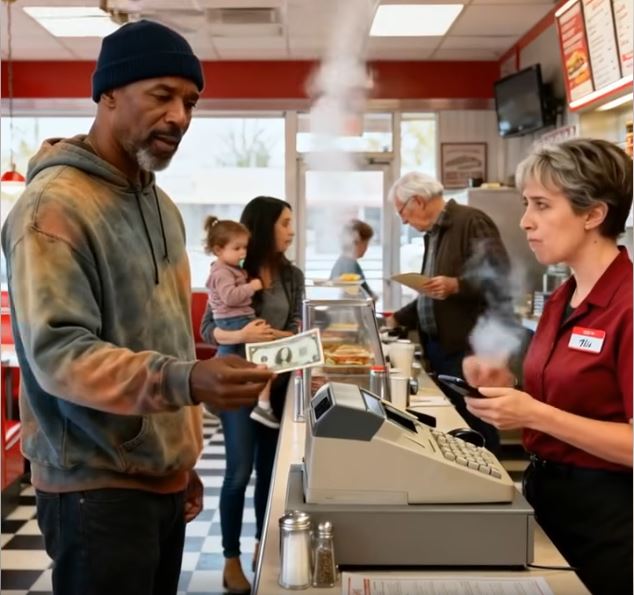 He stood, removed his hood, and revealed who he truly was. Shock rippled through the diner as he confronted the cashiers for their disrespect and suspended them on the spot. Then he stepped behind the counter, tied on an apron, and served with the same pride he had the first day the diner opened. He poured coffee for the construction worker, helped the struggling mother with her tray, greeted each customer with warmth, and moved through the room with the quiet steadiness of a man rediscovering his purpose. Customers whispered, smiled, even clapped, as if witnessing something they thought had been lost in the modern world.