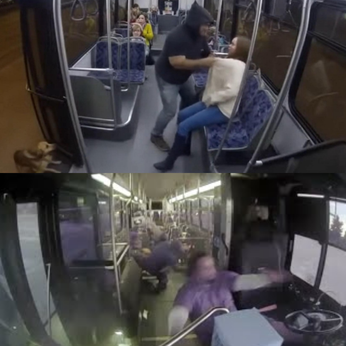 The bus camera captured the incredible moment: the stray standing between the woman and her assailant, barking and snapping until the man finally backed away and fled the scene.